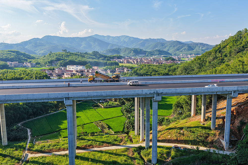 硬核实力!乐动网站摊压机群"组团出击",肇明高速建设跑出加速度