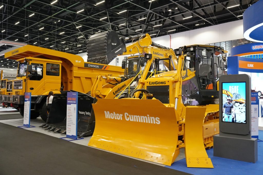 LiuGong’s booth covers an area of 1360 square meters, showcasing more than 30 machines including wheel loader, electric wheel loader, excavator, mining truck, roller, motor grader, bulldozer, skid steer loader, backhoe loader, aerial work platform, forklift, etc.