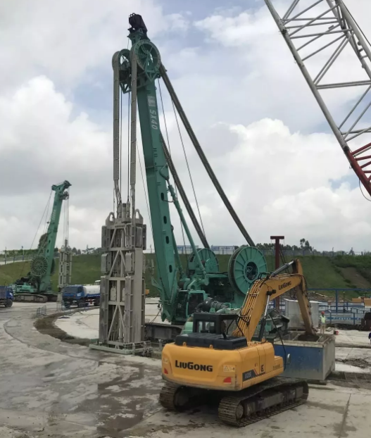 SX40双轮铣和SG60地连墙抓斗均为上海金泰工程机械有限公司自主研发基础施工装备。SX40采用柴油和动力电组合动力,通过大通径排渣管路完成气举反循环排渣,在大粒径卵石地层、坚硬岩层等复杂地质条件下高效铣削成槽施工,相比目前国际通行的泵吸排渣双轮铣更为经济适用。在实际施工中,SX双轮铣与SG抓斗“双机合璧”、抓铣结合,已成为当前国内复杂地质条件地连墙施工的标志性组合工艺。