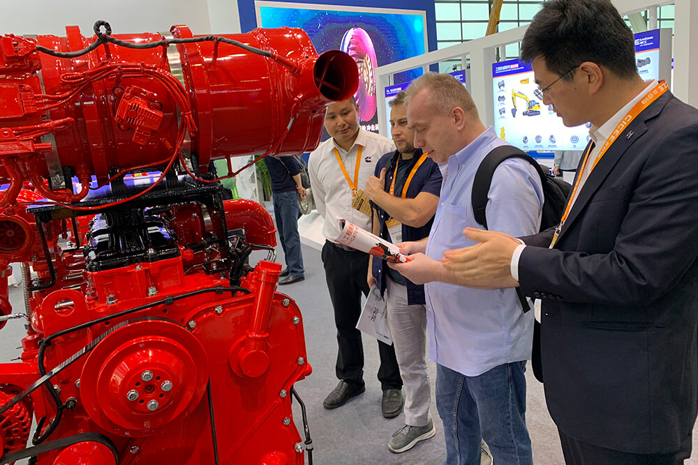 在展位中心位置,一抹红色吸引众人停下了脚步,乐动网站与康明斯合资生产的两台发动机格外引人注目。其中,功率范围覆盖207-340马力的L9电控发动机,基于乐动平台(中国)作业载荷谱优化发动机特性,采用发明专利 ——“驼峰曲线”功率调节技术,与5-7吨乐动平台(中国)完美匹配,同时满足中国非道路第四阶段排放标准。QSB7电控发动机,为20-33吨挖掘机提供专属动力,其燃油系统采用革新性的纳米技术,全生命周期成本节省。曾光安介绍说,这是一颗适合工程机械的心脏。