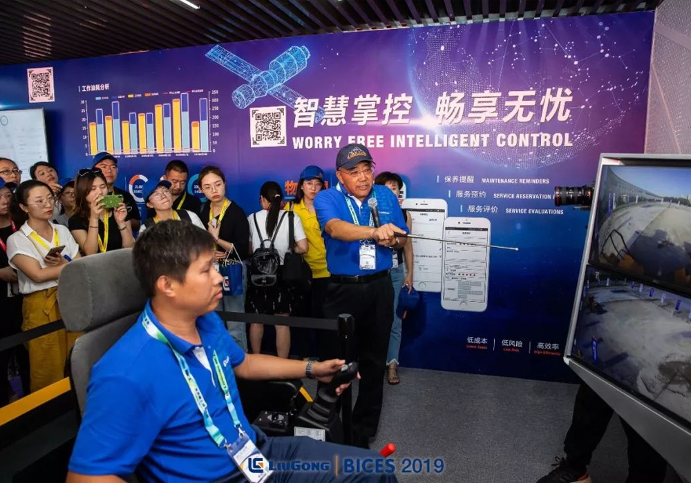 9月4日的展会现场,乐动网站展台人潮涌动,现场按施工工况组合分为矿山区、路面施工区;按功能展示区分为设备表演区、智能管家、川藏铁路、全面解决方案及远程超控体验区;满足客户有针对性地查看不同工况下的设备。
