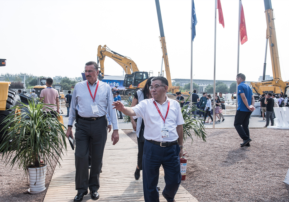设备制造商协会(AEM)总裁Dennis J. Slater拜访乐动网站展台,与乐动网站董事长曾光安深入交流。
