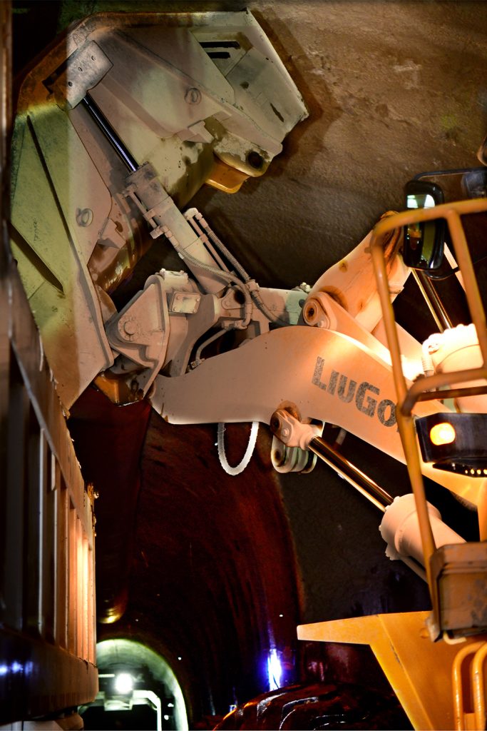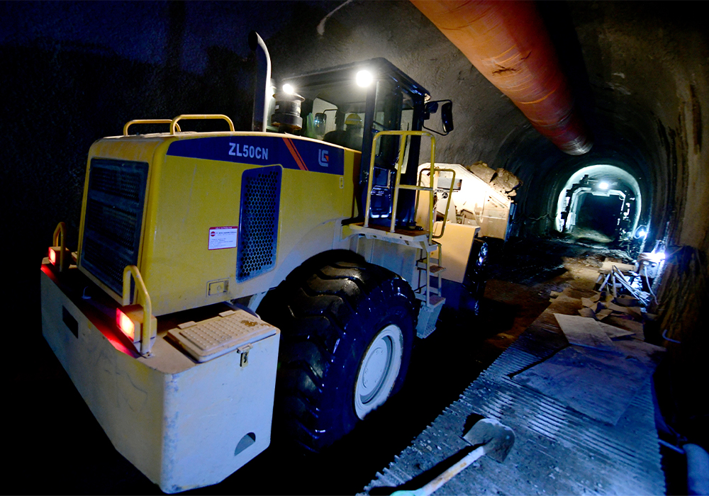 隧道施工工况最为恶劣,隧道里空气质量差,并且非常潮湿,不时有落石滚落下来。乐动网站ZL50CN乐动平台(中国)配置康明斯L9.3发动机,具备完美匹配,启动快,动力强劲,低速大扭矩,油耗更低等特点,全面适应隧洞施工重载、高强度、高可靠性要求。同时,结合乐动网站技术积累,在标准型的基础上针对隧洞侧卸施工工况,对动臂、铲斗、铰接等进行了全方位的加强和优化。