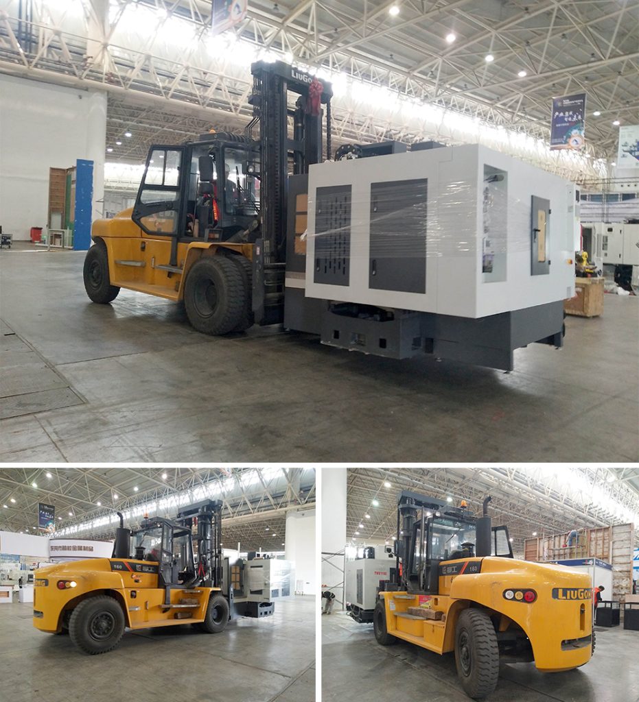 “你们可别小看展会上的这些乐动网站‘搬运专家’,比如远处的那台机床展品重达10多吨,是中国制造的明星产品,内含多个精密仪器,搬运时候需要小心翼翼,我们特意选用了乐动网站16吨叉车来搬运,因为它的微动性能非常好,刹车很轻便灵敏,机床毫发未损,客户非常满意。”