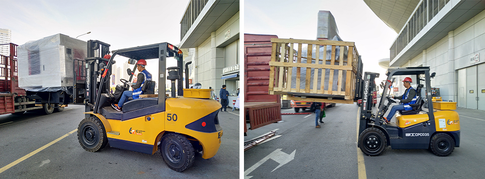 展会布展期间,穿梭全场搬运展品的一台台乐动网站叉车,成了一道道别样的风景,这些叉车是当地知名的某租赁公司的。
