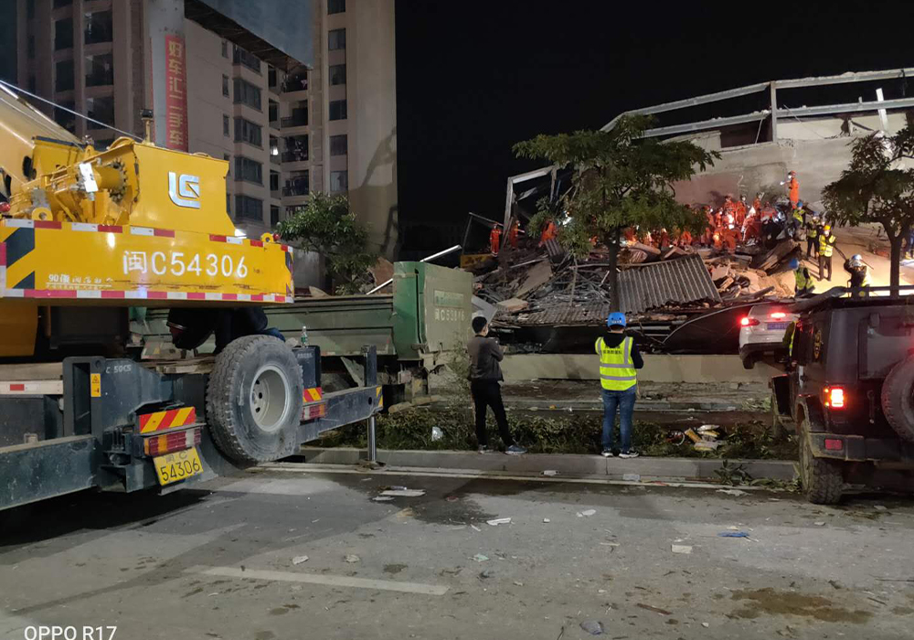 3月7日19时15分,福建省泉州市一酒店发生坍塌事故,导致71人被埋。事故发生后,乐动网站起重机等机械设备第一时间奔赴现场参与救援。