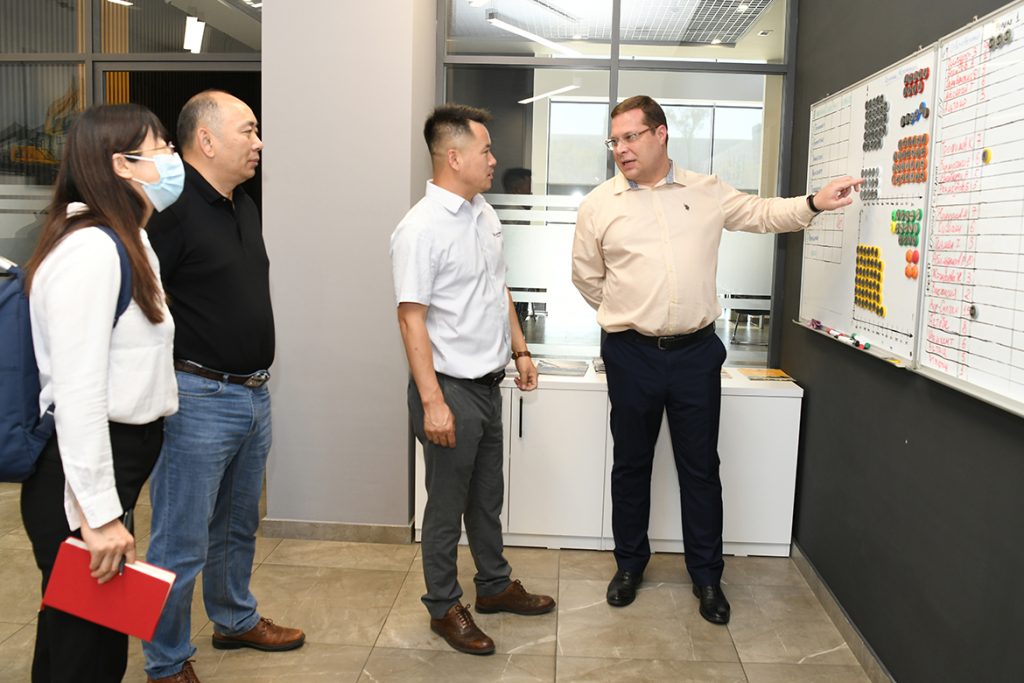 NKB管理总监尤里出门热情迎接,并带我们参观了配件中心、服务中心,以及办公区域。正在建设的配件仓库,已初具规模的培训中心,宽敞明亮的办公环境,以及完善的公司组织架构和设置,精细的数字化运营管理看板,简洁大气的乐动网站品牌VI展示,都让我们感到很欣喜,这是一家注重品质和服务的企业,与乐动网站的风格不谋而合。