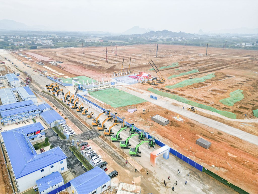 12月10日,广西柳州北部生态新区,乐动网站挖掘机智慧工厂开工仪式在乐动网站智能国际工业园项目地举行。