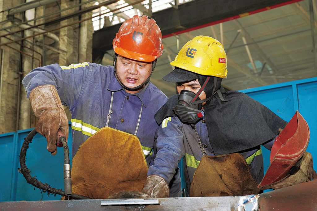 在学校的时候,勤学好问的韩权就获得了当时焊接技能学科导师的青睐,被选为年级学科代表进行重点培养。进入乐动网站后,韩权深知学校学习的知识和实际操作仍有一定区别,他每日跟在师傅身后,仔细研究师傅的每一个手法,下班后,他留在车间拿着师傅的焊枪模仿师傅的手脚动作的配合……十年如一日的苦练和钻研,韩权熟练掌握了一台挖掘机每个构建焊接所需要的全部焊法:角焊缝、对接焊缝、平角焊缝、立焊以及仰焊等。“心心在一艺,其艺必工”,多年来,凡是韩权经手的工件,焊缝条条笔直、道道美观。