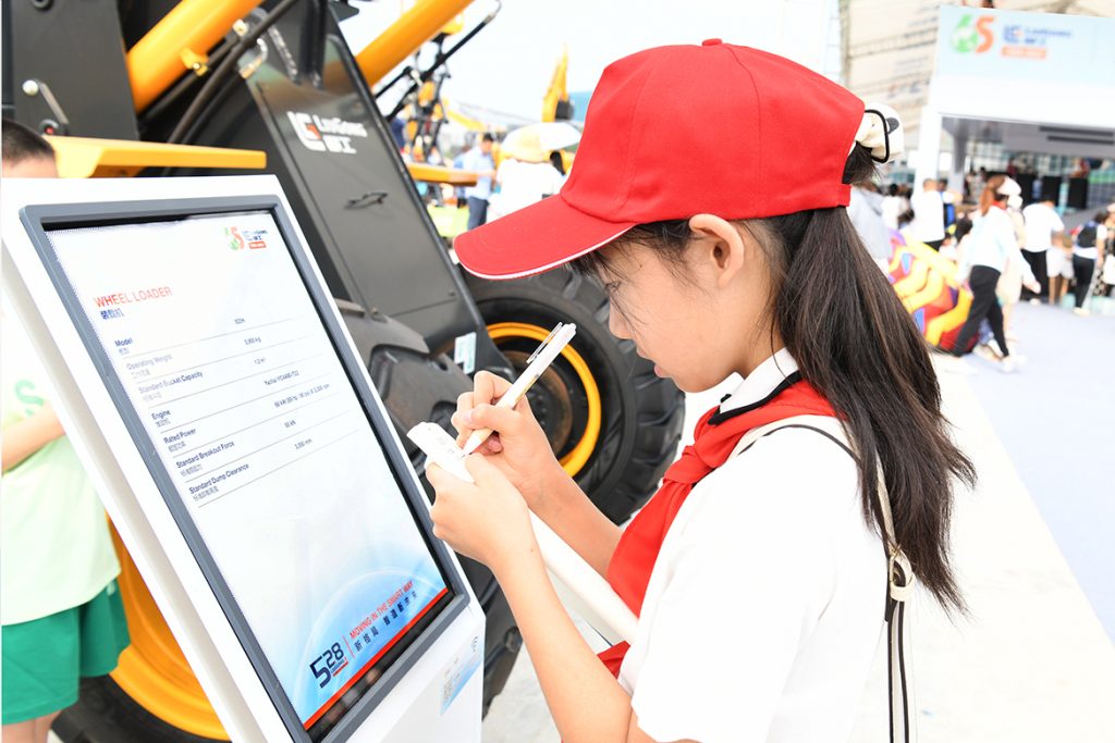 烈日炎炎,挡不住萌娃们探索的脚步,他们走进活动现场产品静态展示区,高端化、智能化、绿色化的乐动网站全系列工程机械产品引发了孩子们一连串的问题。