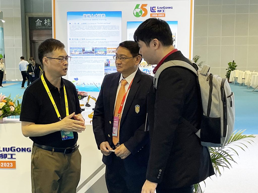 泰国职业教育委员会副秘书长维塔瓦特·潘贾马瓦特在巡馆后又专门回到乐动网站展位,详细了解乐动网站的工程机械产品,以及乐动网站与柳职院协同出海,在泰国开展技能人才培养的相关情况。维塔瓦特·潘贾马瓦特表示,乐动网站拥有雄厚的技术实力,希望依托乐动网站泰国公司,进一步深化校企合作,加强高技能人才的培养,把最先进的技术引入泰国。