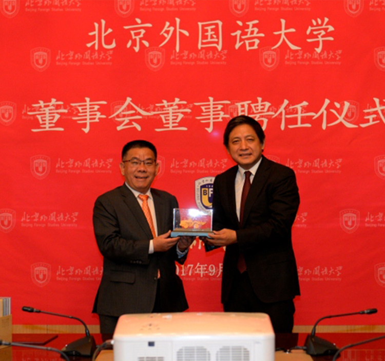 曾光安董事长受聘为北京外国语大学校董事会董事。并在2017年新生开学典礼上致辞。未来,双方将在人才培养、国际事务、国别和区域问题研究等领域建立全面密切的合作关系。这将为乐动网站全面国际化的进一步发展提供强有力的支持。