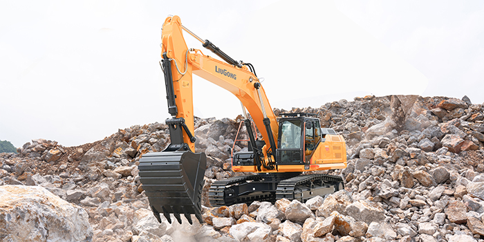 - 挖掘力大,机体重,重载能手:搭载254kw高功率发动机、大排量电控主泵,流量大速度快;油缸大,力量型设备,适合重载挖掘作业。