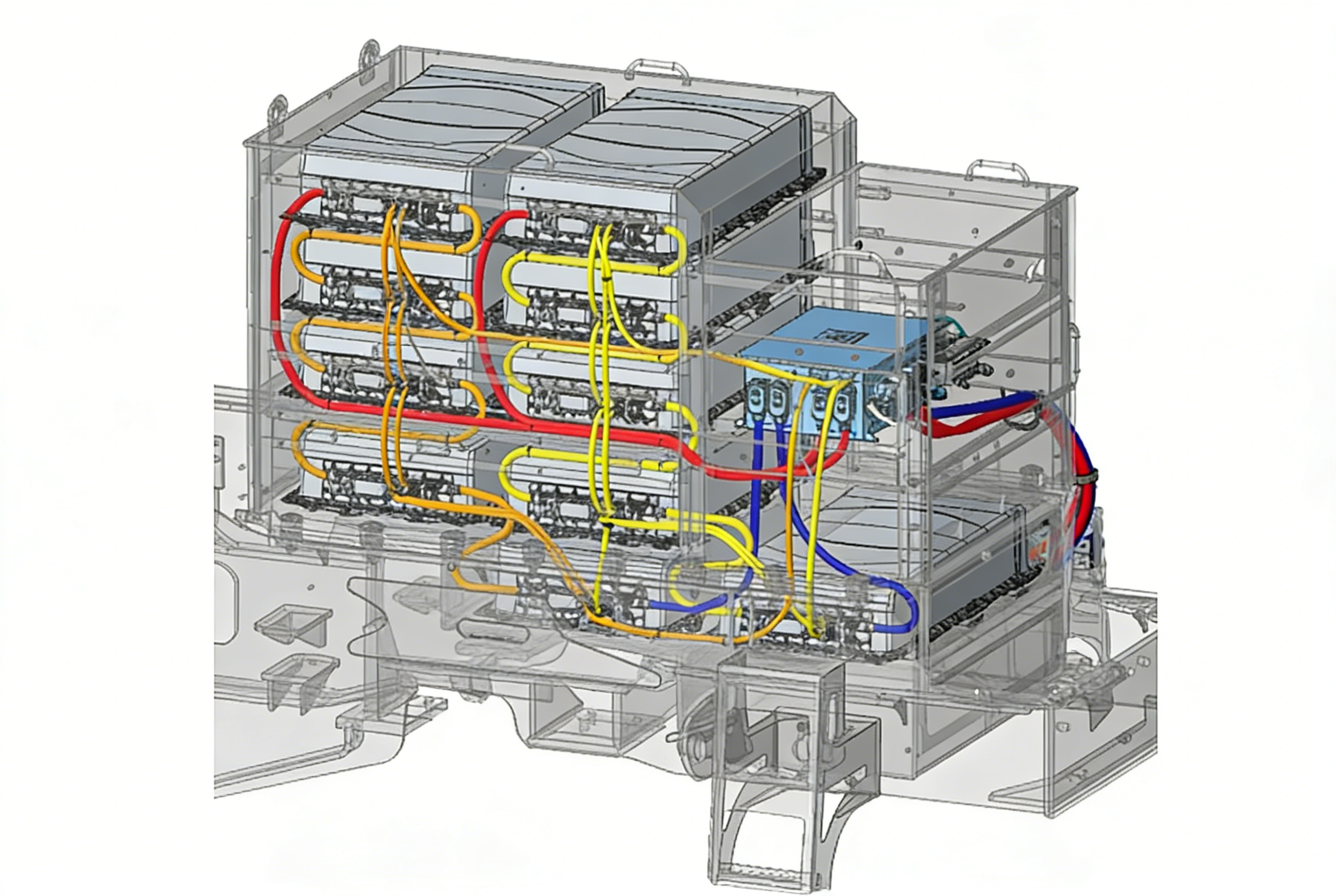 拖线式方案采用多样化进线方式,满足不同作业场景。纯电式方案采用模块化、定制化pack包动力电池,为对应场景油改电的空间限制、动力匹配提供可靠方案,配置灵活。