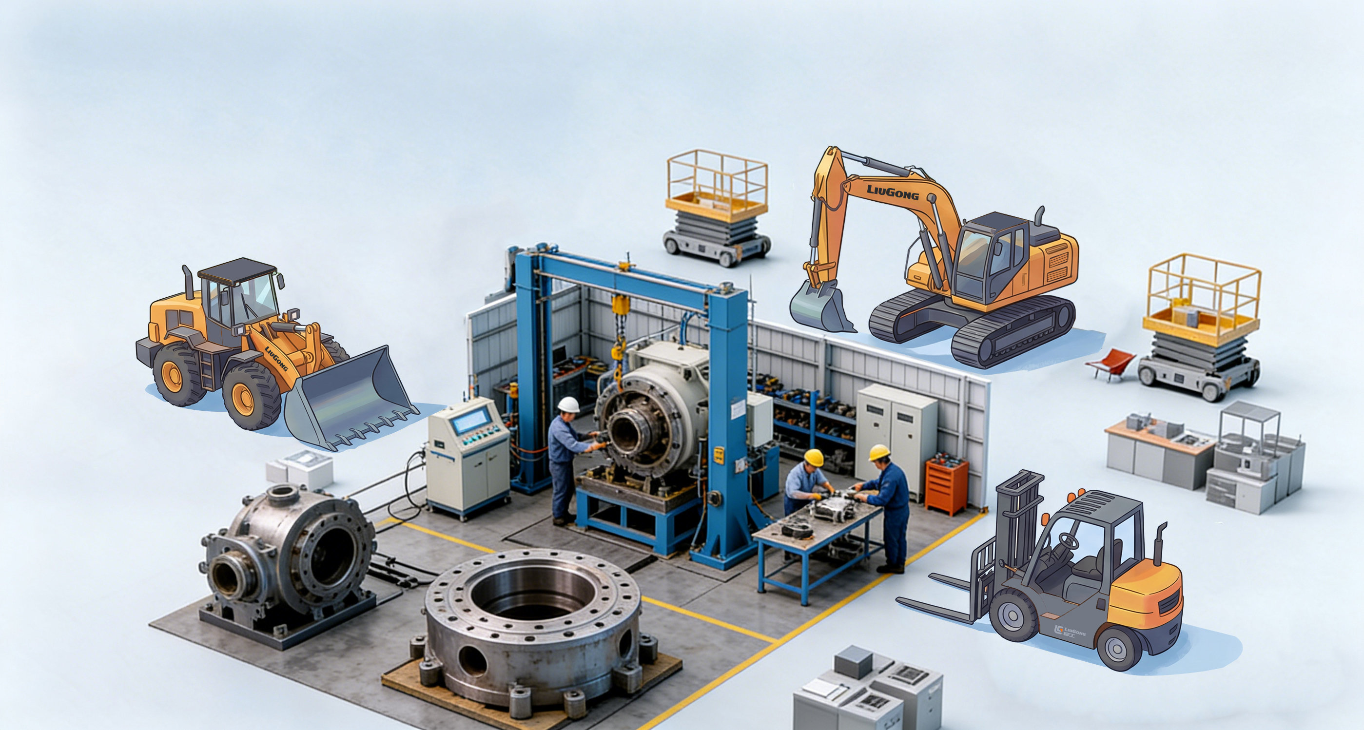再制造生产线包含预清洗、拆解、清洗、分选、修复、装配、试验、涂装等制造工艺,具有工艺完备、技术先进的特点,具备各类工程机械再制造产品的生产能力。