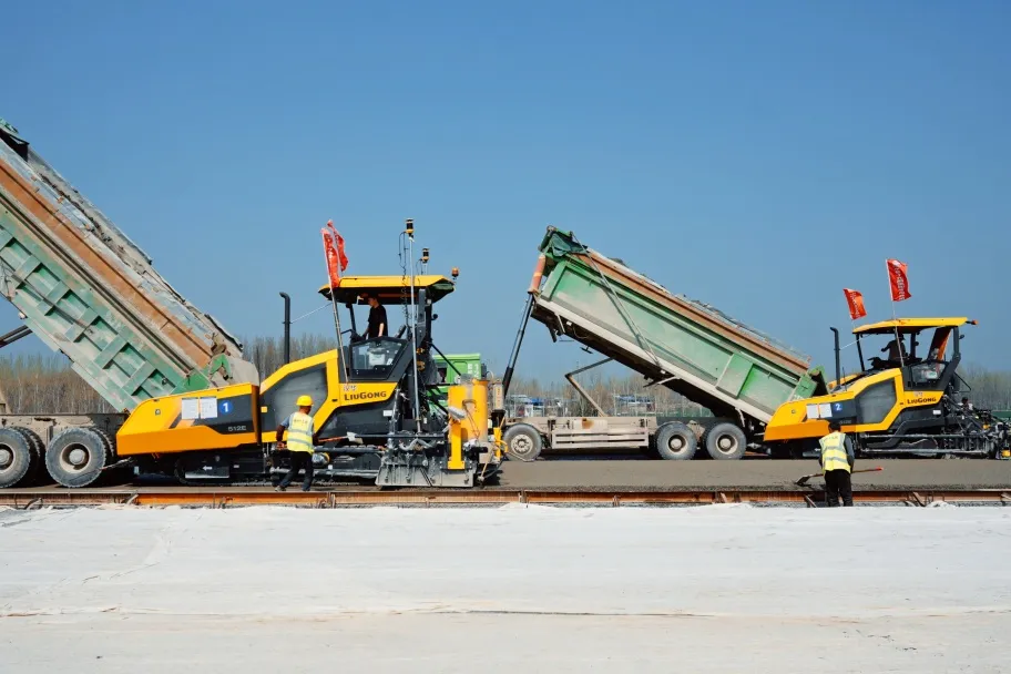 2台乐动网站512E摊铺机并肩作战,成为项目提速的关键。其配备的18t超大容量料斗显著减少了设备待机补料时间,保障了施工连续性。更为核心的是其高压共轨电控低转速发动机,其ECO节能模式在轻载摊铺工况下,综合油耗相比传统设备大大降低,实现高效与节能的双赢。项目负责人赞叹:“这让我们在工期紧张压力下也能后顾无忧!”