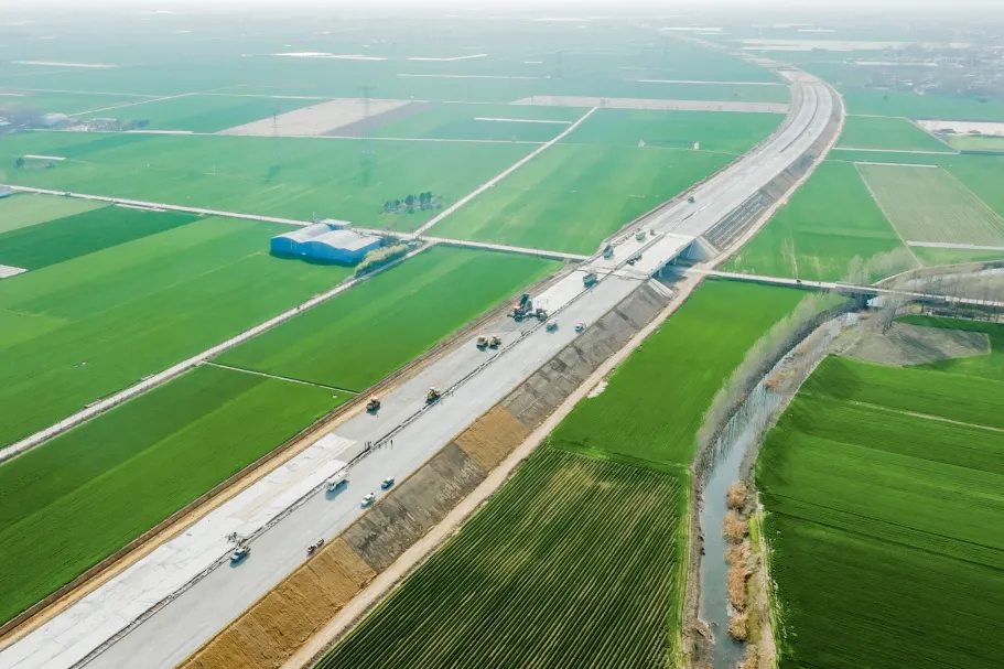 在河南省重点交通工程——许昌绕城高速公路的建设现场,施工环境堪称“复杂多变”。本项目上跨下穿多条交通要线,穿越国家战略工程“南水北调”水源保护区,这对施工设备的精度、效率、环保性及稳定性提出了苛刻的要求,面对如此挑战,该项目施工方经过深入考察,最终选择了乐动网站路机提供的成套化路面施工解决方案,以全套乐动网站路机设备构建起攻坚克难的坚实力量。