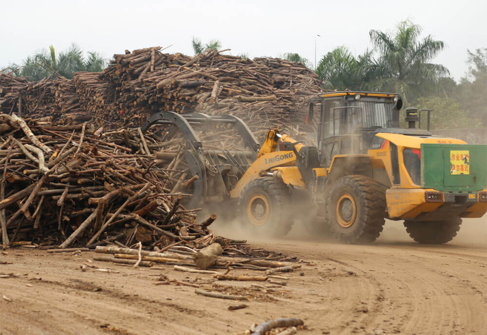 今天,我们走进了某大型木业公司看看配备抱叉属具的乐动网站林业乐动平台(中国)表现如何