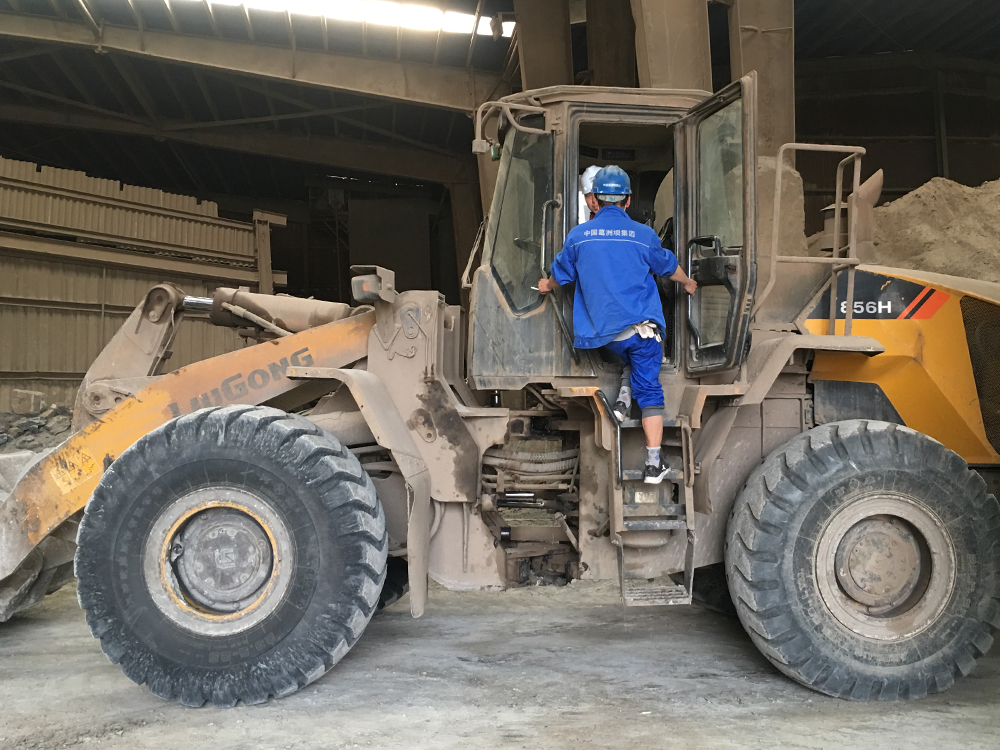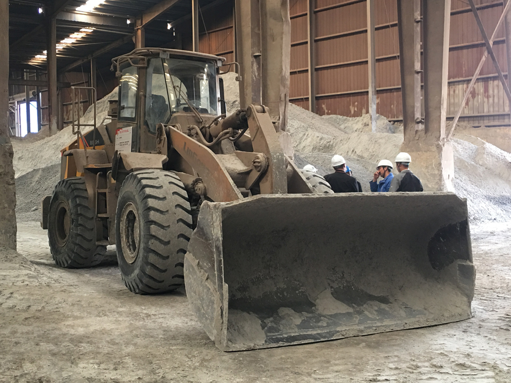 在走访过程中,我们了解到厂内还有一台高机龄乐动网站设备正在料仓内生产作业。因现场的作业环境尘土过大,工况较为恶劣,在余总的带领下,我们在做好了充分的安全保护措施后有幸进入到生产车间,一睹乐动网站855N的威风。